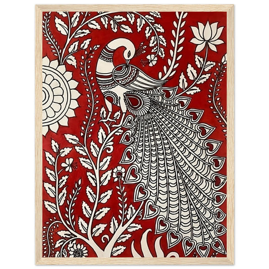 Madhubani-Malerei , auch bekannt als Mithila-Kunst, ist eine jahrhundertealte Volkskunstform, die aus der Region Mithila in Bihar, Indien , stammt. Dieser traditionelle Kunststil ist für seine komplizierten Muster und leuchtenden Farben bekannt und spiegelt Themen aus Natur, Mythologie und Spiritualität wider. Madhubani-Gemälde werden weltweit für ihren kulturellen Reichtum und ihre detaillierte Handwerkskunst gefeiert, was sie ideal für Kunstliebhaber und Sammler macht, die nach kulturell inspiriertem Dekor suchen.