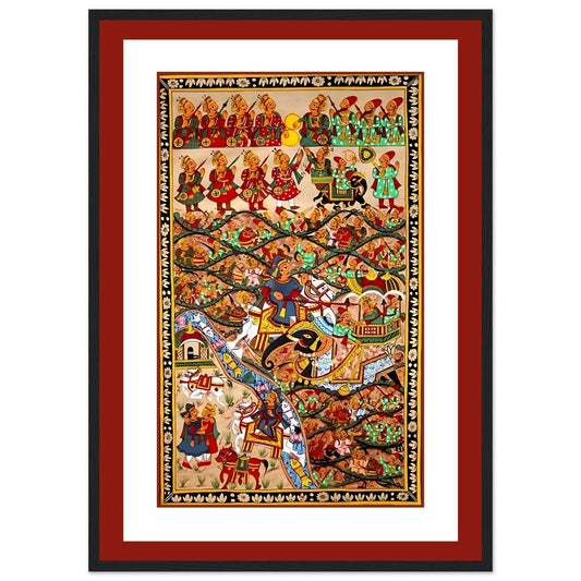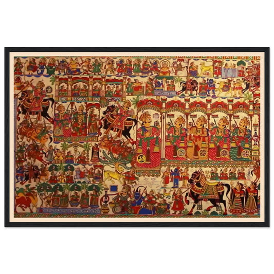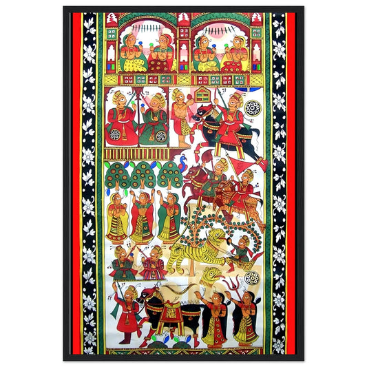 Phad-Malerei ist eine alte indische Volkskunstform, die aus Rajasthan stammt. Diese traditionelle Kunst, die für ihre leuchtenden Farben und komplizierten Details bekannt ist, hat Kunstliebhaber und Sammler auf der ganzen Welt in ihren Bann gezogen. Phad-Malerei ist mehr als nur bildende Kunst – sie erzählt epische Geschichten von Gottheiten, Helden und Folklore und zeigt Indiens reiches kulturelles Erbe.