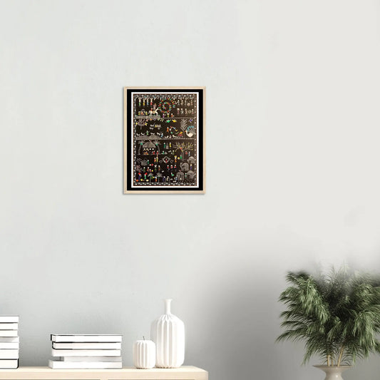 La peinture Warli serait née vers 2500 avant J.-C., ce qui en fait l'une des plus anciennes formes d'art tribal de l'Inde. Initialement dessinées sur des murs en terre avec de la pâte de riz blanche, ces peintures étaient utilisées pour décorer les maisons et commémorer des événements importants tels que les mariages et les fêtes des récoltes. Les motifs géométriques de l'art Warli ont des significations symboliques : les cercles représentent les corps célestes, les triangles les montagnes et les arbres, et les carrés les espaces sacrés. Cette forme d'art respectueuse de l'environnement a évolué au fil du temps, passant des murs au papier et à la toile, tout en conservant son essence traditionnelle.