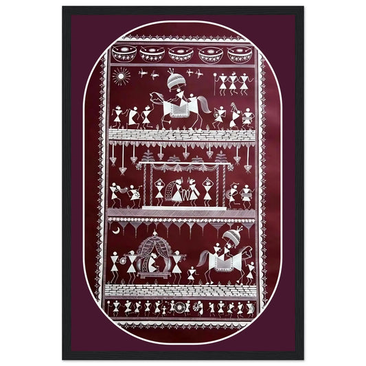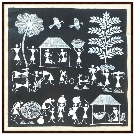 La peinture Warli est une forme d'art tribal traditionnel originaire des tribus Warli du Maharashtra, en Inde . Connu pour son style minimaliste mais expressif, l'art Warli capture des scènes de la vie rurale, notamment l'agriculture, la chasse, la danse et les rituels. Caractérisée par des formes géométriques comme des cercles, des triangles et des carrés, cette forme d'art symbolise l'harmonie entre la nature et la vie humaine. Avec des racines remontant à 2500 avant J.-C., les peintures Warli continuent de fasciner les amateurs d'art et les collectionneurs du monde entier, offrant un aperçu du riche patrimoine culturel de l'Inde.